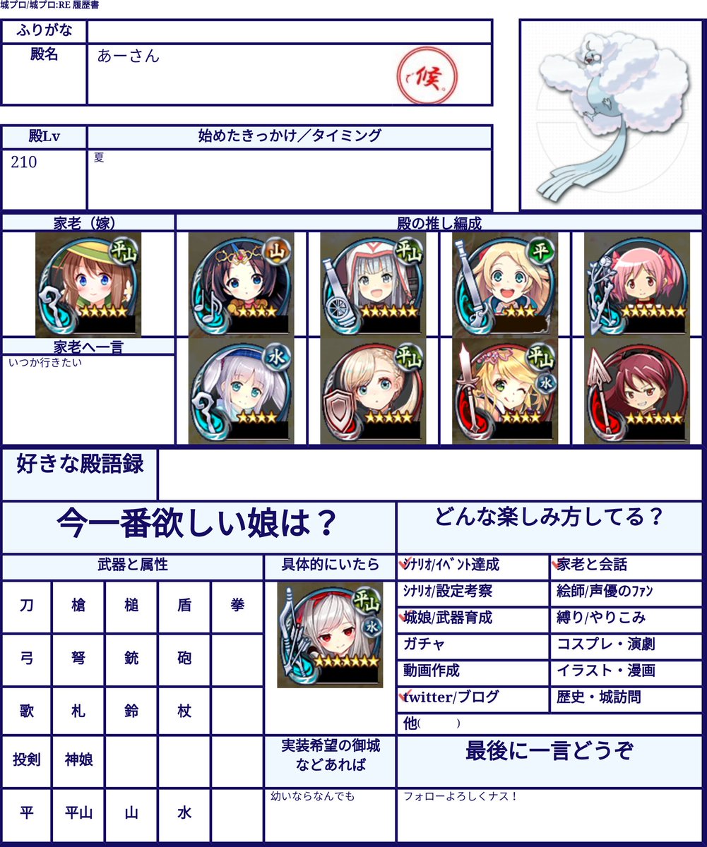 御城プロジェクト Re 城プロ履歴書 ハッシュタグまとめ 3ページ目 Togetter